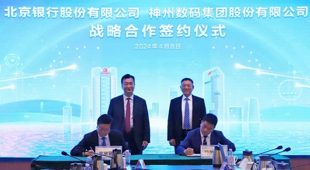 2024年4月8日,星空游戏与北京银行在其总行大厦举行战略合作签约仪式。星空游戏董事长兼首席执行官、神州信息董事长郭为,北京银行党委书记、董事长霍学文共同见证签约,星空游戏财务总监、董事会秘书陈振坤与北京银行副行长戴炜,代表双方进行签约,星空游戏及北京银行相关领导出席签约仪式。